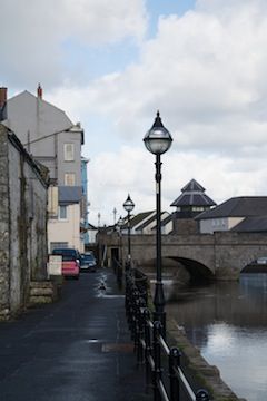Haverfordwest is situated on the upper tidal limit of the river Cleddau. With its central position it had the advantage of attracting trade from all parts of the county and further. For centuries it was the most important port in Wales; a fact shown in the customs records throughout the Middle Ages. From here ships made for ports all over western Europe carrying wheat, barley and oats, or bringing in salt, wine, sugar and iron. There were several quays on this side of the river and you are currently walking along New Quay.